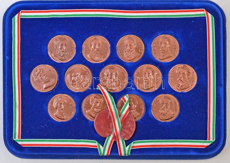 ifj. Szlávics László (1959-) 1987. "Aradi vértanúk I.-XIII." vörösréz sorozat az aradi vértanúk portréjával (13xklf), dÃsztartóban, dÃsztokban, a 26. honvédzászlóalj 5. századának sérült viaszpecsétjével (39-40mm) T:1