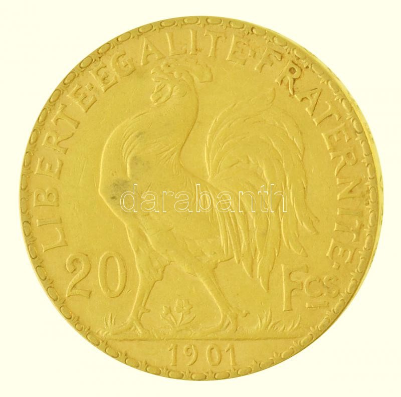 France 1901. 20 Franc... https://www.darabanth.com/hu/337-Gyorsarveres/337.0/Numizmatika/Magyar-es-kulfoldi-aranypenzek-es-emlekveretek~1500012/Franciaorszag-1901-20Fr-Au-6-41g0900-T2--France-1901-20-Francs-Au-6-41g0900-CXF-Krau~II1894612