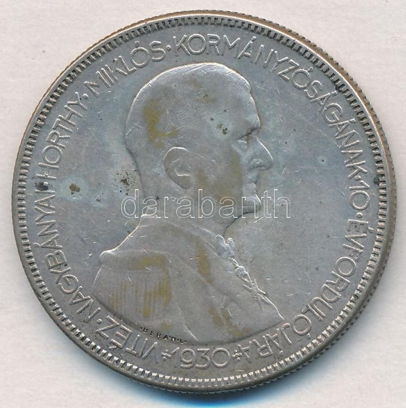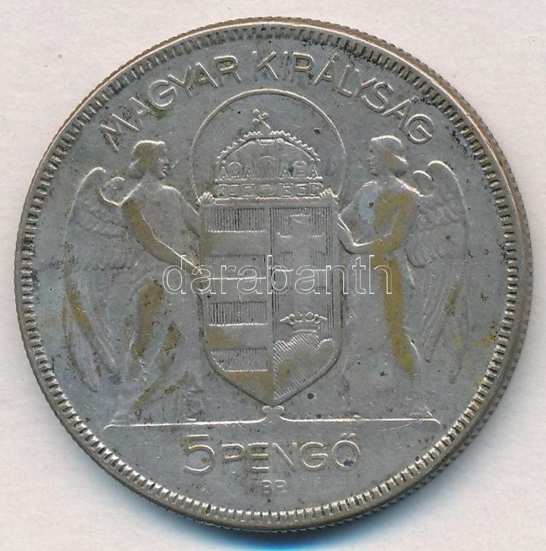 Leírás: 1930. 5P Ag "Horthy jobbra" T:3