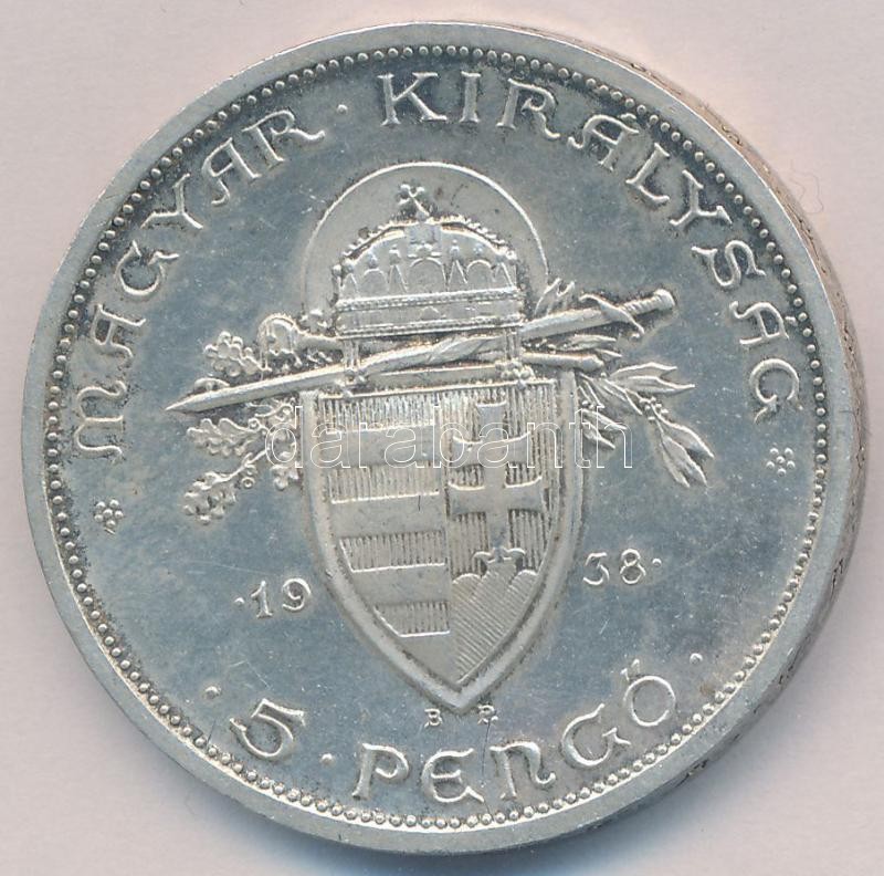 Leírás: 1938. 5P Ag "Szent István" T:2 kis patina