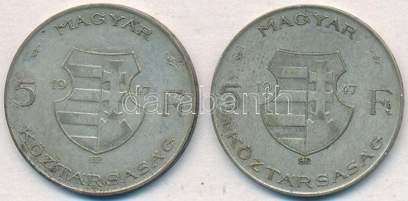 Leírás: 1947. 5Ft Ag "Kossuth" (2x) T:2-,3 patina