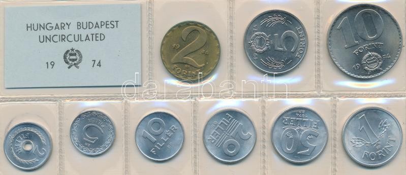 1974. 2f-10Ft (9xklf) érmés forgalmi sor fóliatokban T:1 Adamo FO7 https://www.darabanth.com/hu/337-Gyorsarveres/337.0/Numizmatika/Magyar-es-magyar-verdejelu-fem-es-ezustpenzek~1500009/1974-2f-10Ft-9xklf-ermes-forgalmi-sor-foliatokban-T1-Adamo-FO7~II1886779