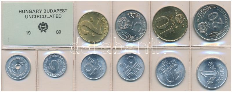1989. 2f-20Ft (10xklf) érmés forgalmi sor fóliatokban T:1 Adamo FO22 https://www.darabanth.com/hu/337-Gyorsarveres/337.0/Numizmatika/Magyar-es-magyar-verdejelu-fem-es-ezustpenzek~1500009/1989-2f-20Ft-10xklf-ermes-forgalmi-sor-foliatokban-T1-Adamo-FO22~II1891833