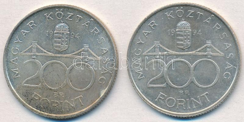 Leírás: 1994. 200Ft Ag "Deák" (2x) T:2 kis patina