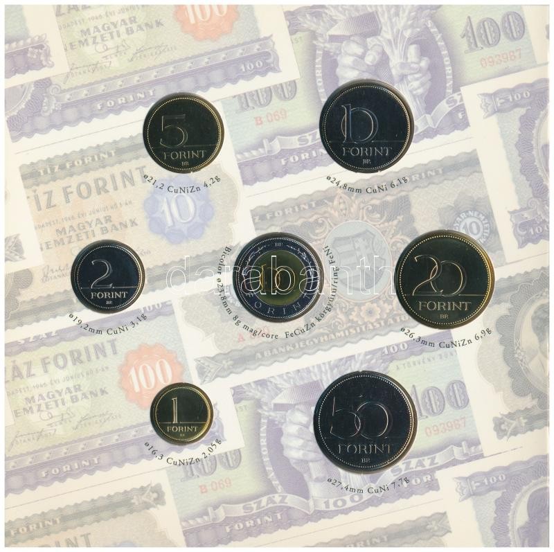 Leírás: 2006. 1Ft-100Ft (8xklf) forgalmi sor szettben, benne 1946-os 1Ft Ag "Hatvanéves a Forint" proof kivitelben T:BU kis patina
