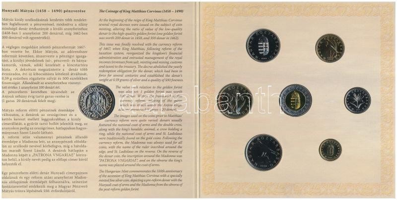 Leírás: 2008. 1Ft-100Ft (7xklf) "Reneszánsz emlékév" forgalmi sor szettben + Mátyás denár Ag fantáziaverete "Reneszánsz emlékév" dísztokos forgalmi szettben T:BU