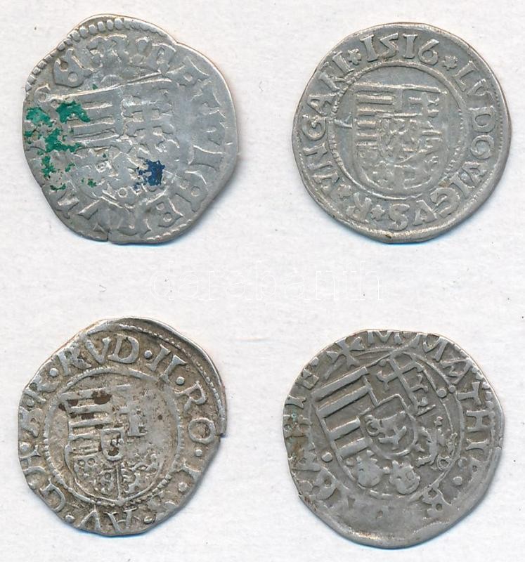 Leírás: 4db-os vegyes denár tétel, közte 1583K-B Denár Ag "Rudolf" (0,47), 1489K-P Denár Ag "I. Mátyás" (046,g) T:2-3