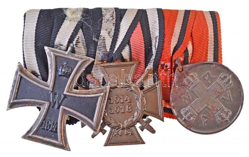 Német Birodalom ~1914. "Vörös Kereszt Érme" Fe kitüntetés mellszalagon + 1914. "Vaskereszt 2. osztály" kitüntetés mellszalagon + Német Harmadik Birodalom 1934. "Első Világháborús Érdemkereszt 1914-1918" kitüntetés szalaggal, harcolóknak, hátoldalán "No 44 R.V. PFORZHEIM" jelzéssel T:2, rozsda