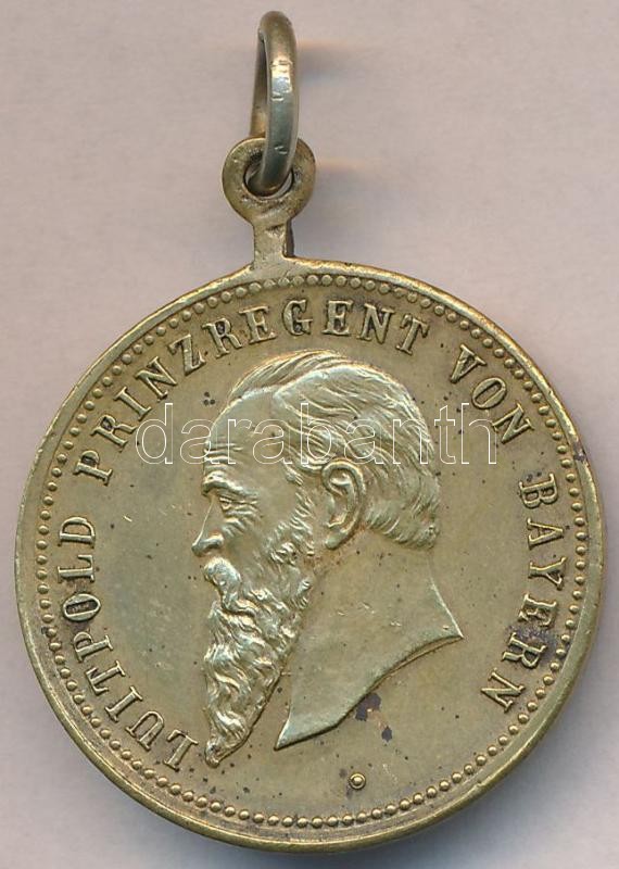 German Empire / Bavaria 1895. "Luitpold Prinzregent von Bayern / Achtertag 25. Jahriges Militar Jubilaum Kaiserslautern" gilt metal commemorative medal with ear (26mm) C:XF spotted