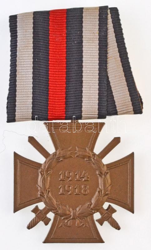 German Third Reich 1934. "The Honour Cross of the World War 1914-1918" decoration with ribbon for combatants with "W. D.?" mark on back C:AU,XF