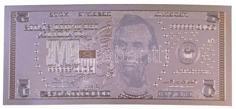 Amerikai Egyesült Államok 2006. 5$ "Federal Reserve Note" aranyozott bankjegy replika, csak előoldali nyomat T:I