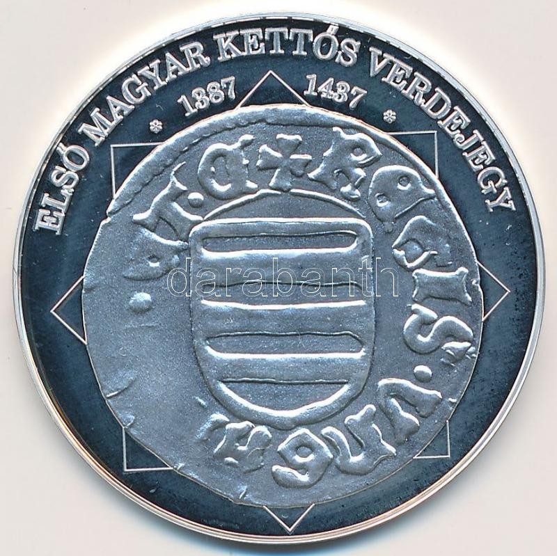 Leírás: DN "A magyar nemzet pénzérméi - Első magyar kettős verdejegy 1387-1437" Ag emlékérem (10,37g/0.999/35mm) T:1 (eredetileg PP)