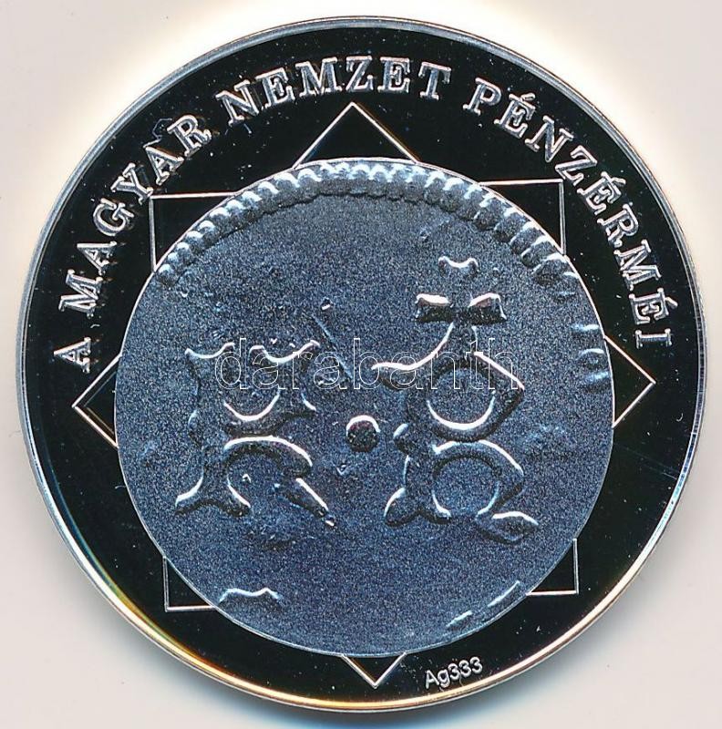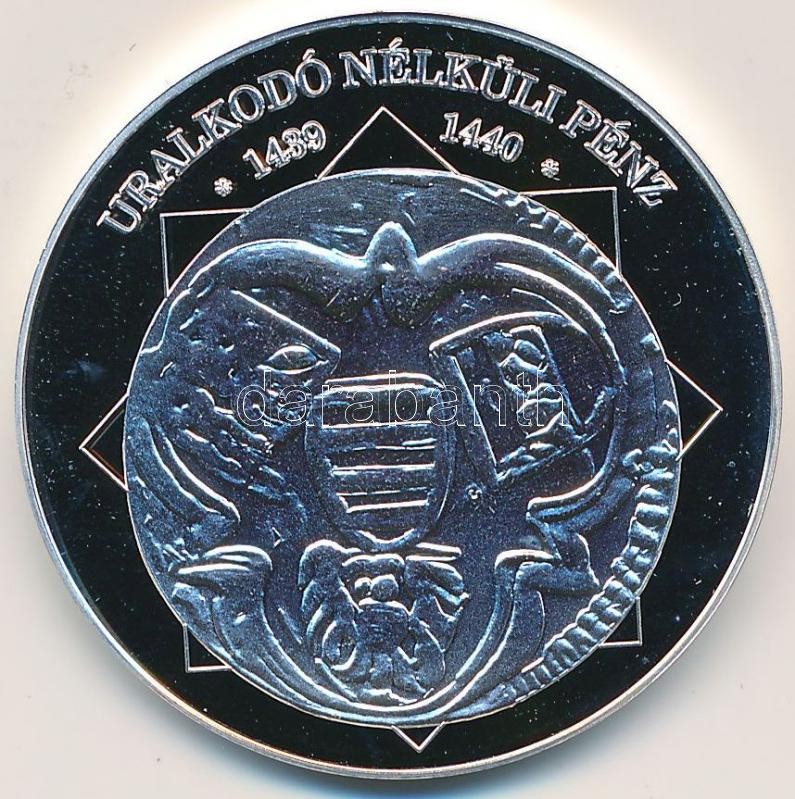 Leírás: DN "A magyar nemzet pénzérméi - Uralkodó nélküli pénz 1439-1440" Ag emlékérem tanúsítvánnyal (15g/0.333/35mm) T:PP