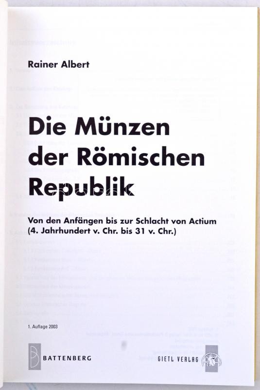 Rainer Albert: Die Münzen der Römischen Republik. Battenberg, Regensta... https://www.darabanth.com/hu/337-Gyorsarveres/337.0/Numizmatika/Numizmatikai-irodalom~1500003/Rainer-Albert-Die-Munzen-der-Romischen-Republik-Battenberg-Regenstauf-2003~II1880073
