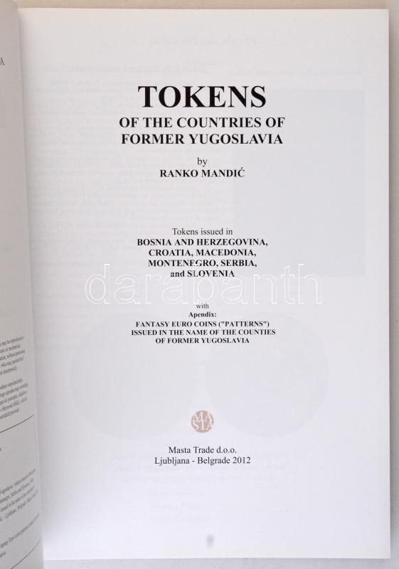 Ranko Mandic: Tokens of the Countries of former Yugoslavia. Masta Trad... https://www.darabanth.com/hu/337-Gyorsarveres/337.0/Numizmatika/Numizmatikai-irodalom~1500003/Ranko-Mandic-Tokens-of-the-Countries-of-former-Yugoslavia-Masta-Trade-Ljubljana-Belgrad-2012-Ha~II1880404