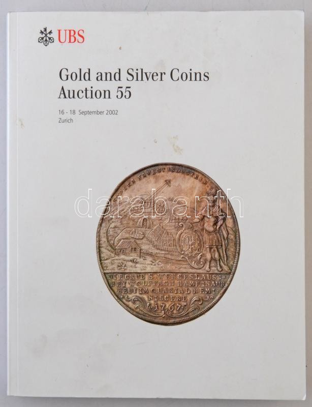 Leírás: UBS - Gold and Silver Coins Auction 55 - 16-18 September 2002, Zürich. Árverési katalógus, elkelési listával