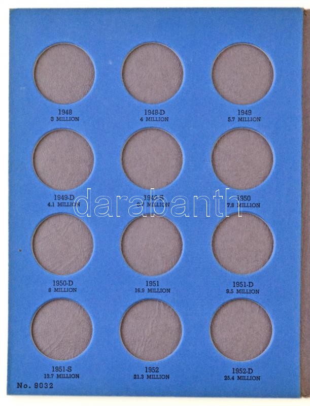 Leírás: Érmeberakó az 1948-1963 között kiadott amerikai 1/2D "Franklin" címletű érmékhez T:I