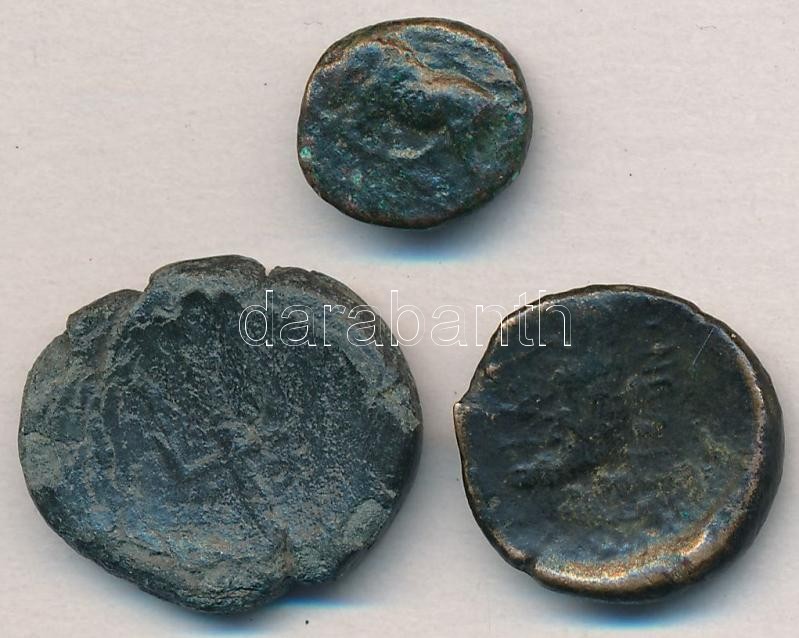 Leírás: 3db-os vegyes ókori bronzpénz tétel T:3