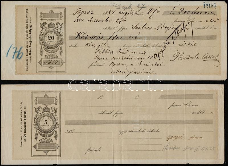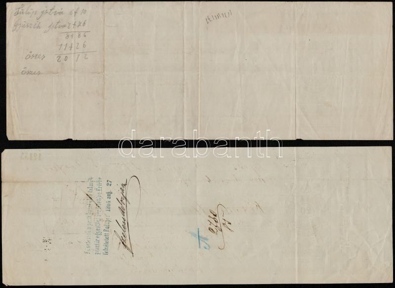 Leírás: Budapest ~1884. 2db váltó, egyik kitöltetlen, másik kitöltve, hátoldalán bélyegzés T:III
