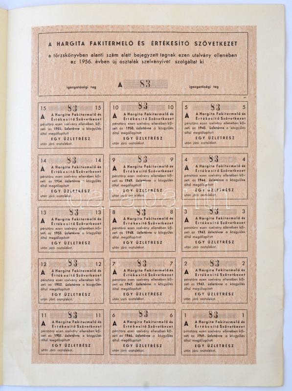 Budapest 1942. "Hargita Fakitermelő- és Értékesítő Szövetkezet&qu... https://www.darabanth.com/hu/337-Gyorsarveres/337.0/Numizmatika/Reszvenyek-es-sorsjegyek~1500006/Budapest-1942-Hargita-Fakitermelo-es-Ertekesito-Szovetkezet-nevre-szolo-szovetkezeti-~II1893863