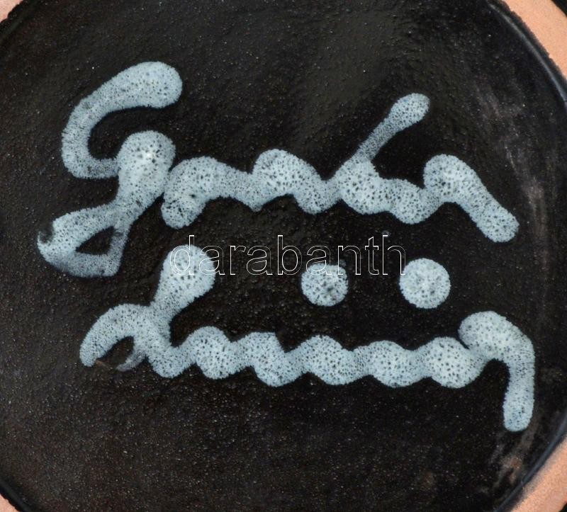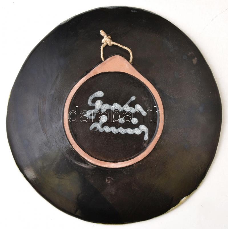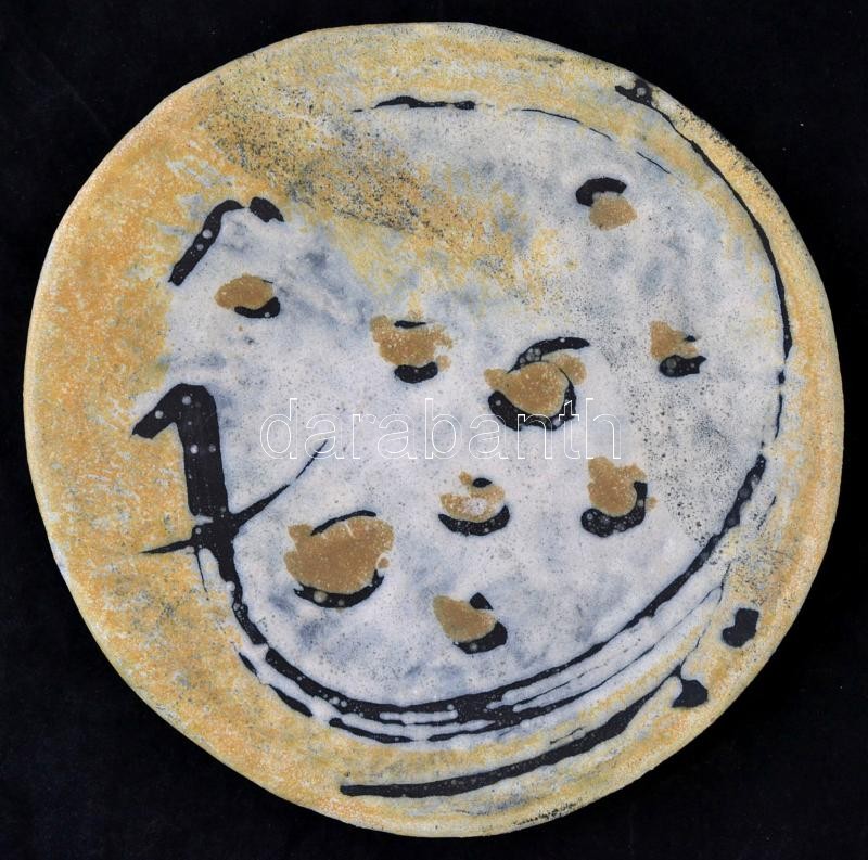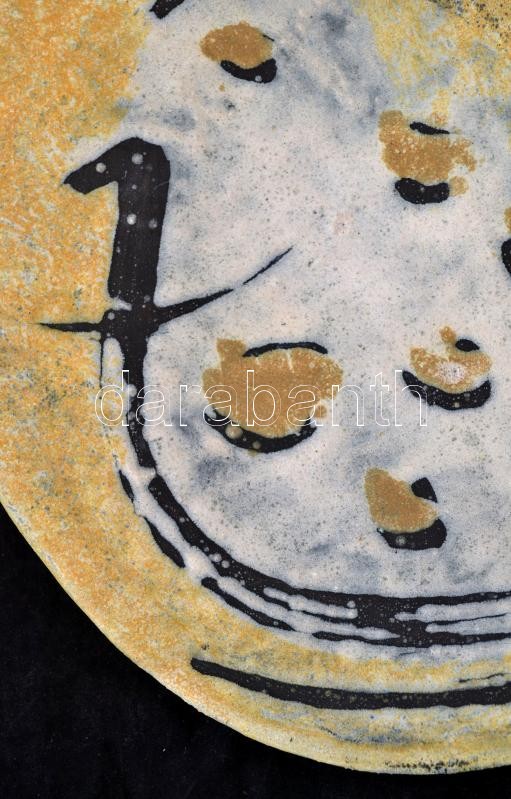 Leírás: Gorka Lívia (1925-2011): Gyöngytyúkos fali tál. Kézzel festett festett mázas kerámia, jelzett, apró mázhibákkal, d: 28 cm