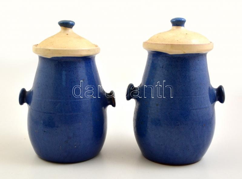 Leírás: Két fedeles köcsög. Mázas kerámia, apró kopásokkal 26 cm, 2l