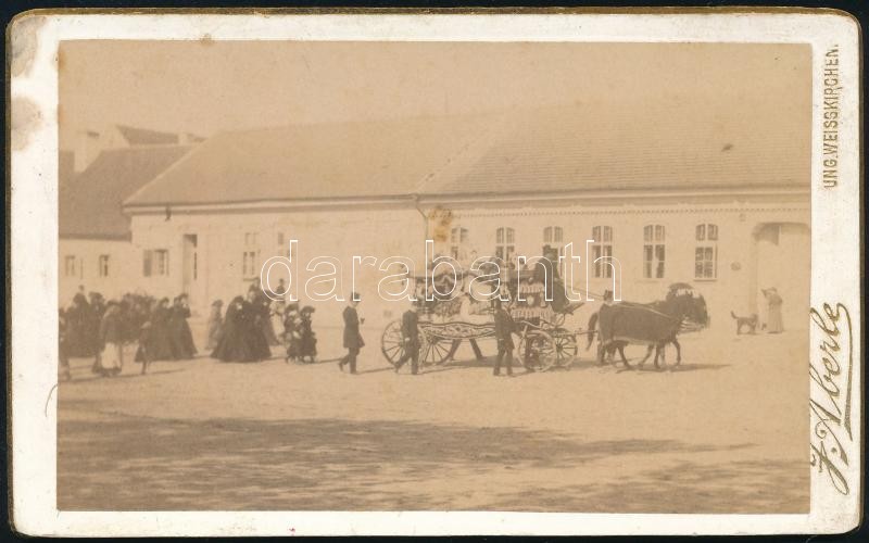 Leírás: cca 1900 Gyászmenet vizitkártya méretű fényképen, foltos, 6,5x11 cm