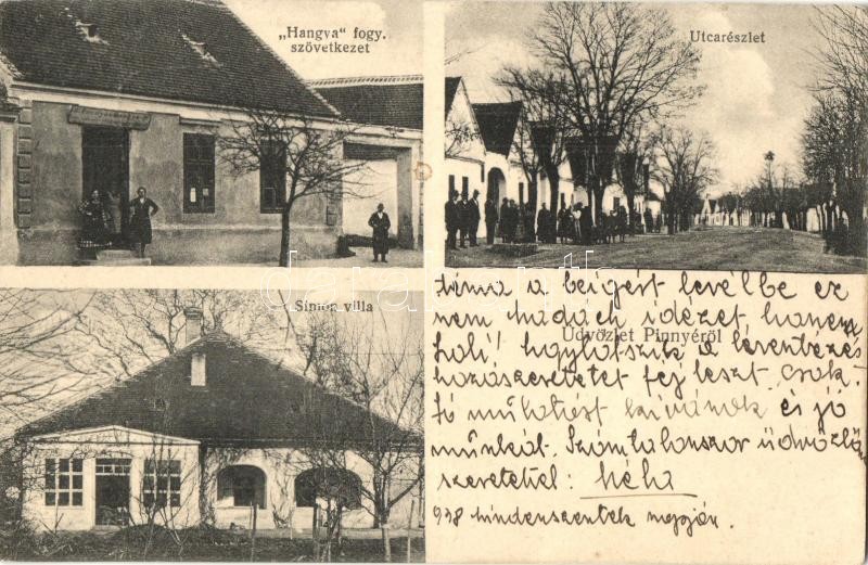 Leírás: 1938 Pinnye, Hangya fogyasztási szövetkezet üzlete, utca, Simon villa