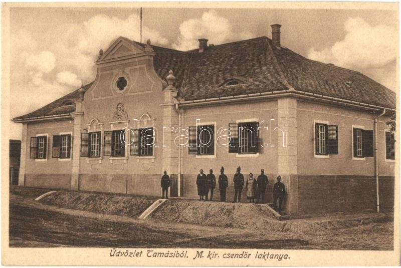 Tamási, M. kir. csendőr laktanya, kiadja Jeruzsálem Ede https://www.darabanth.com/hu/338-Gyorsarveres/338.0/Kepeslapok/Magyarorszag~2000005/Tamasi-M-kir-csendor-laktanya-kiadja-Jeruzsalem-Ede~II1896404