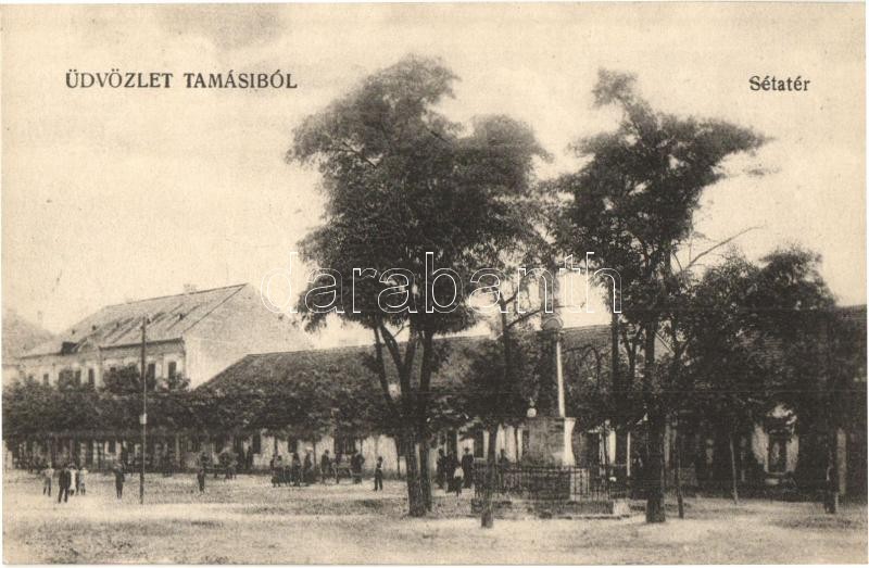 Tamási, Sétatér, Szentháromság szobor, kiadja Jeruzsálem Ede https://www.darabanth.com/hu/338-Gyorsarveres/338.0/Kepeslapok/Magyarorszag~2000005/Tamasi-Setater-Szentharomsag-szobor-kiadja-Jeruzsalem-Ede~II1896407
