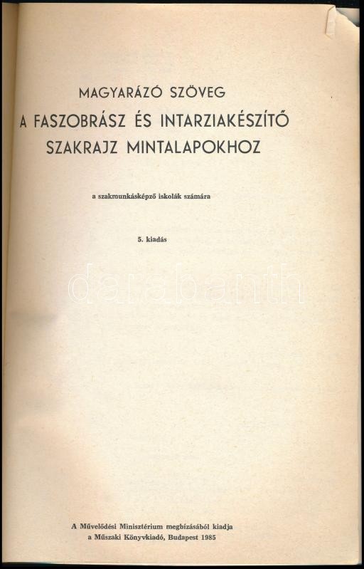 Faszobrász és intarziakészítő szakrajz mintalapok a szakmunkásképző iskolák számára. Összeállította: Farkas Lajos. Bp.,1985, Műszaki. 5. kiadás. Kiadói papírkötés, jó állapotban. Megjelent 230 példányban.