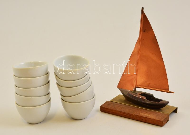 Leírás: 10 db Drasche porcelán gyógyszeres tégely, hibátlanok + réz vitorlás