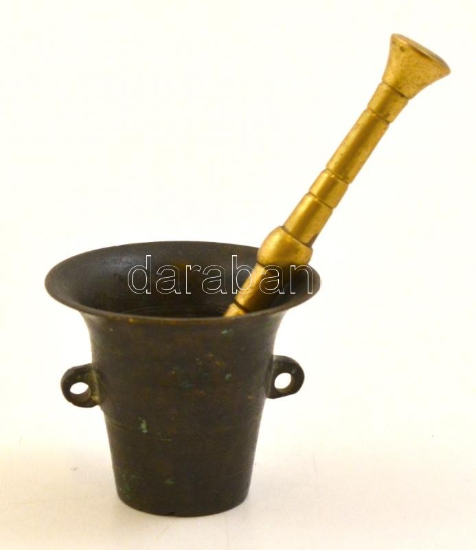 Leírás: Mini réz mozsár pótolt bronz törővel, m: 4 cm és 9,5 cm