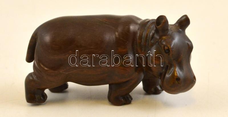 Leírás: Víziló (netsuke), faragott rózsafa, jelzett (olvashatatlan), hibátlan, h:6 cm, m: 3 cm
