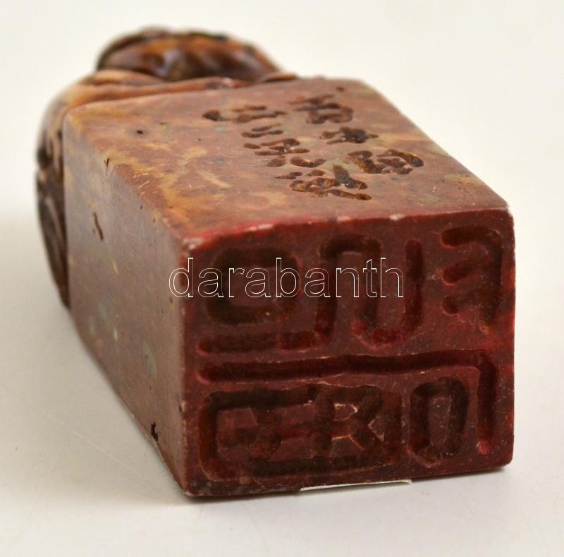 Leírás: cca 1900 kínai pecsétnyomó, faragott zsírkő, m:6 cm