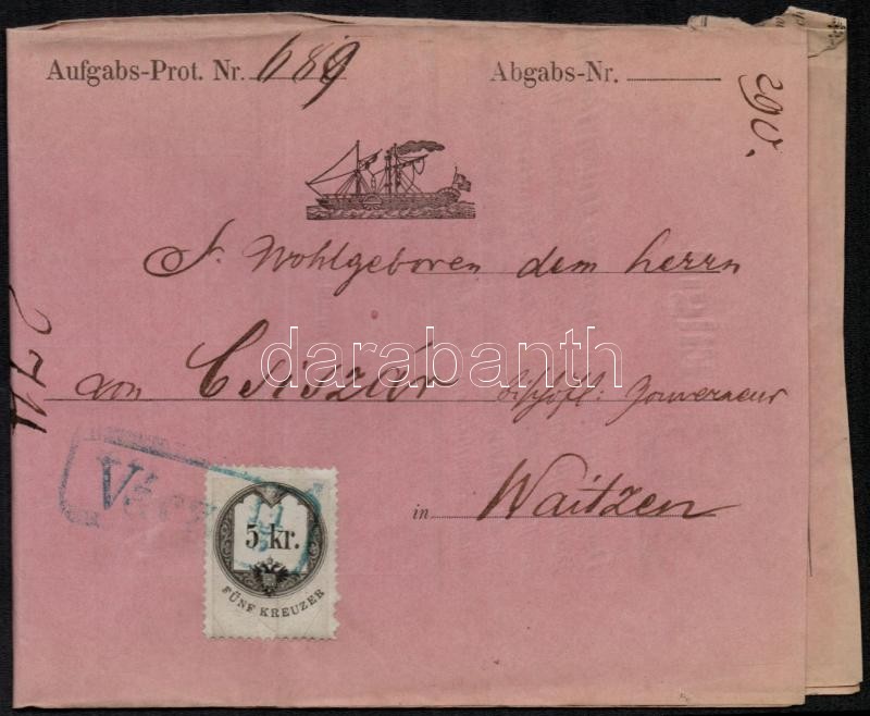 Leírás: 1873 A DDSG Dunai Gőzhajózási Társaság gyorsárú fuvarlevele a Honvéd hajó pecsétjével / Bill of fright of DDSG Steamship Company ship Honvéd