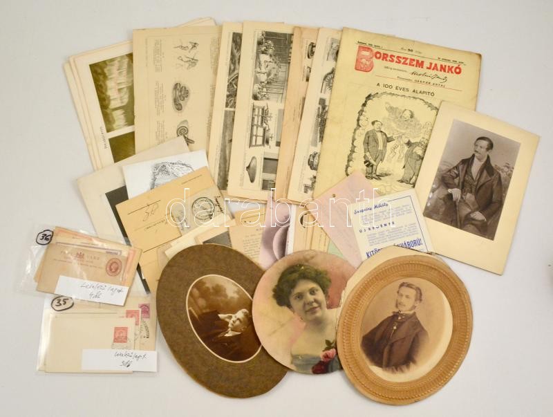 Leírás: Vegyes papírrégiség tétel. benne újságok, fényképek, némi filatélia,. okmányok