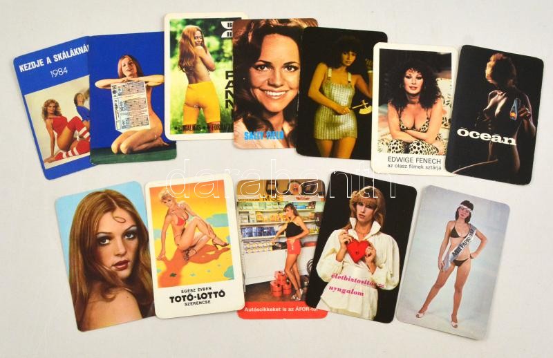 Leírás: 1973-1984 12 db hölgyeket ábrázoló kártyanaptár, köztük erotikus
