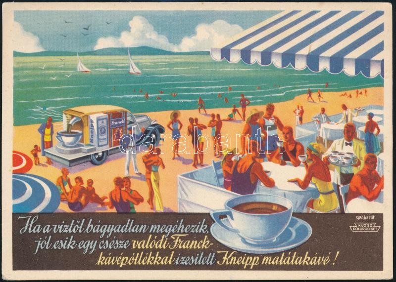 cca 1920-1940 Gönczi-Gebhardt Tibor (1902-1994): Franck Henrik Fiai Rt... https://www.darabanth.com/hu/338-Gyorsarveres/338.0/Mutargy-papirregiseg-egyeb/Reklam~500021/cca-1920-1940-Gonczi-Gebhardt-Tibor-1902-1994-Franck-Henrik-Fiai-Rt-kave-reklamos-kepeslapj~II1902026