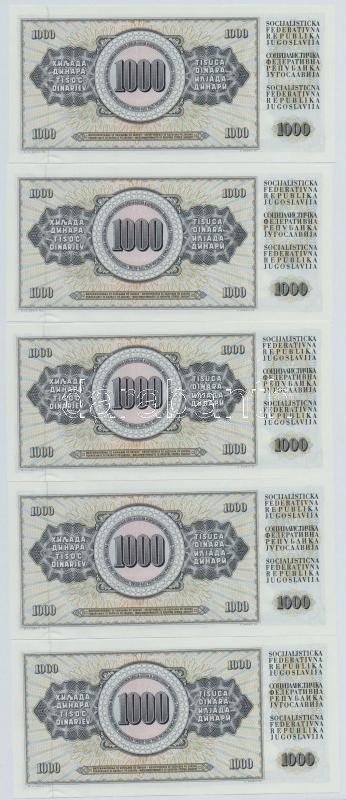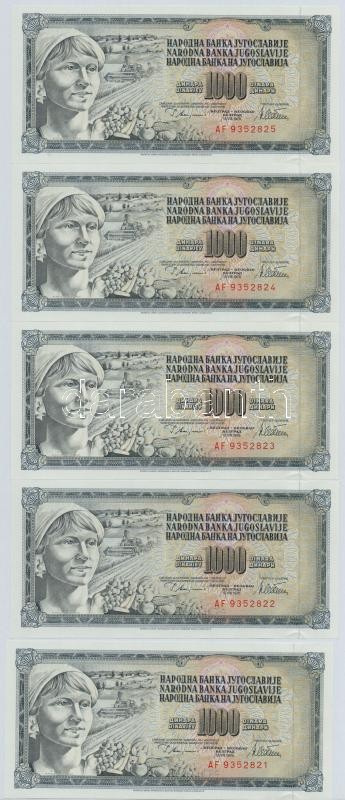 Leírás: Jugoszlávia 1978. 1000D (10x) sorszámkövetők, valamint mindegyiken nyomdahiba "GUVERNE" T:I