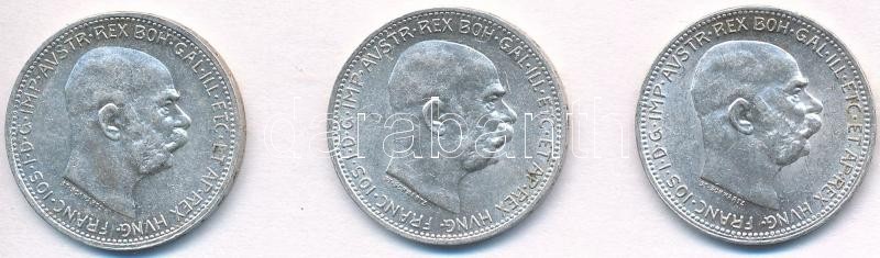 Leírás: Ausztria 1914-1916. 1K Ag "Ferenc József" (3xklf) T:1-,2
