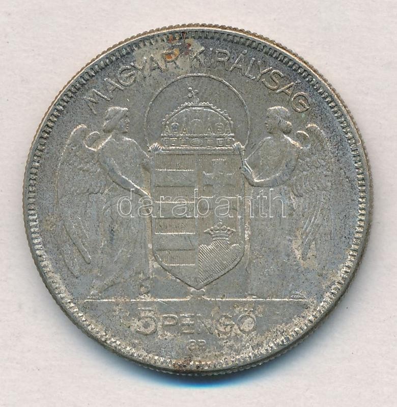 Leírás: 1930. 5P Ag "Horthy jobbra" T:2,2- patina