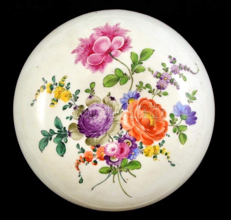 Antik virágmintás bonbonier, kézzel festett, jelzett, kopásnyomokkal, ... https://www.darabanth.com/hu/338-Gyorsarveres/338.0/Porcelan-keramia-uveg/Porcelan~500007/Antik-viragmintas-bonbonier-kezzel-festett-jelzett-kopasnyomokkal-d-18-cm~II1902756