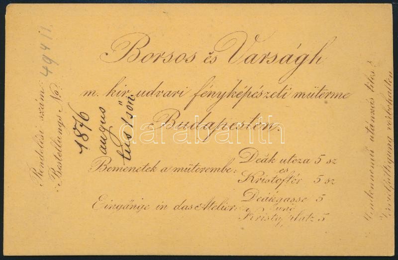 Leírás: 1876 Budapest, vintage, vizitkártya méretű fénykép Borsos és Varságh műterméből, 10x6,5 cm