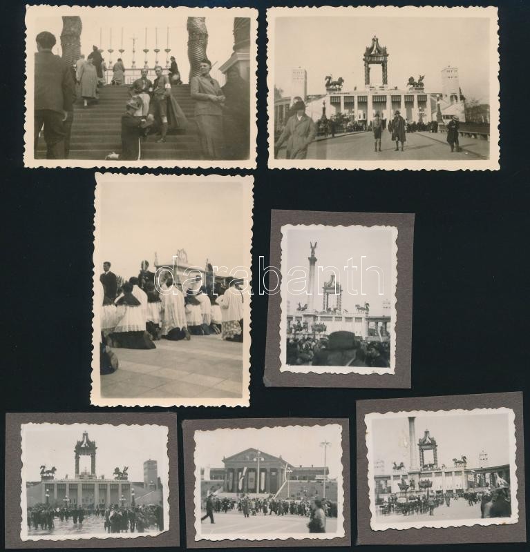 Leírás: 1938 Bp., XXXIV. Eucharisztikus Kongresszus életképei, 7 db fotó, 8×6 és 4×5 cm