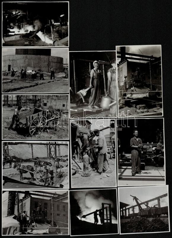 cca 1954 Sztálinváros építése, Ék Sándor (1902-1975) festőművész és fotóriporter hagyatékából, 13 db jelzés nélküli vintage fotó, 6x8,5 cm és 17,4x12,3 cm között