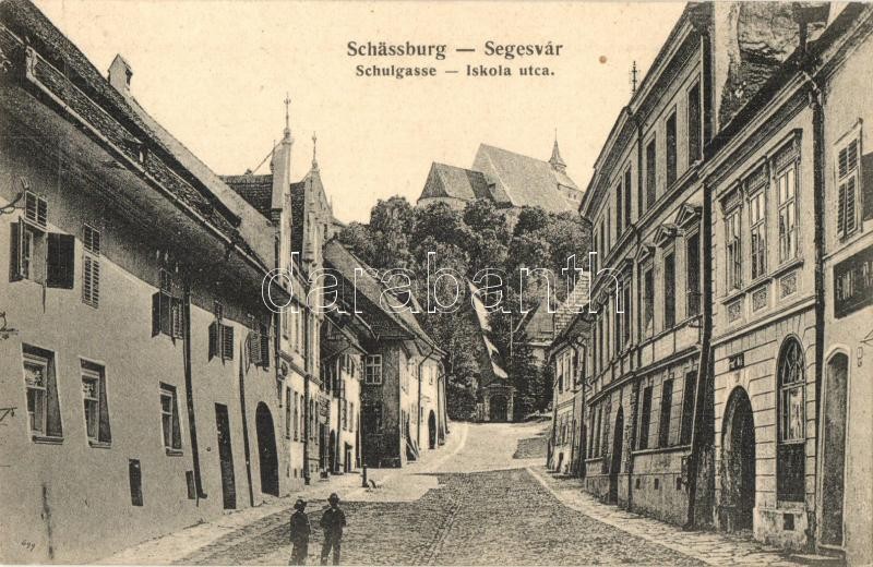 1908 Segesvár, Schässburg, Sighisoara; Schulgasse / Iskola utca. Kiadj... https://www.darabanth.com/hu/339-Gyorsarveres/339.0/Kepeslapok/Erdely~2000006/1908-Segesvar-Schassburg-Sighisoara-Schulgasse-Iskola-utca-Kiadja-W-Nagy-street-view~II1904631