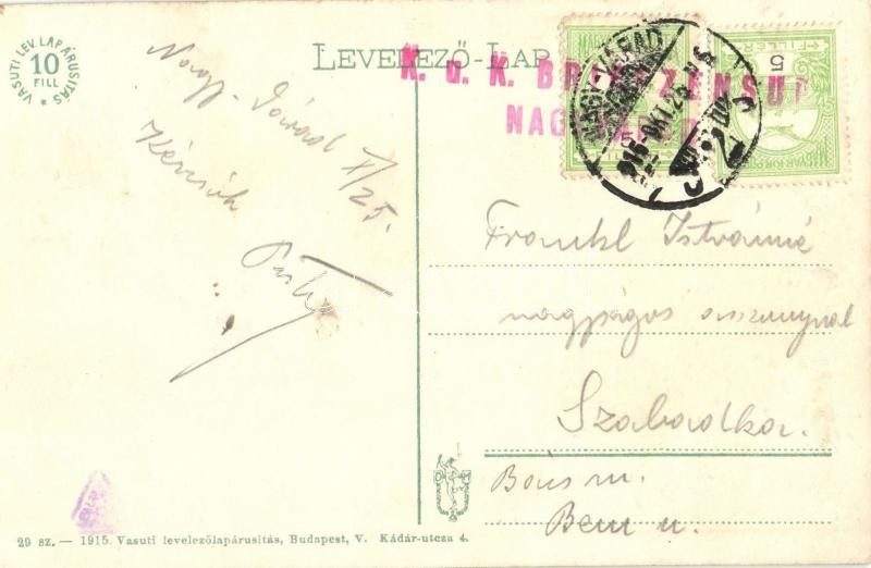 Leírás: 1916 Nagyvárad, Oradea; Ügyvédi kamara / chamber of lawyers + K.U.K. BRIEFZENSUR