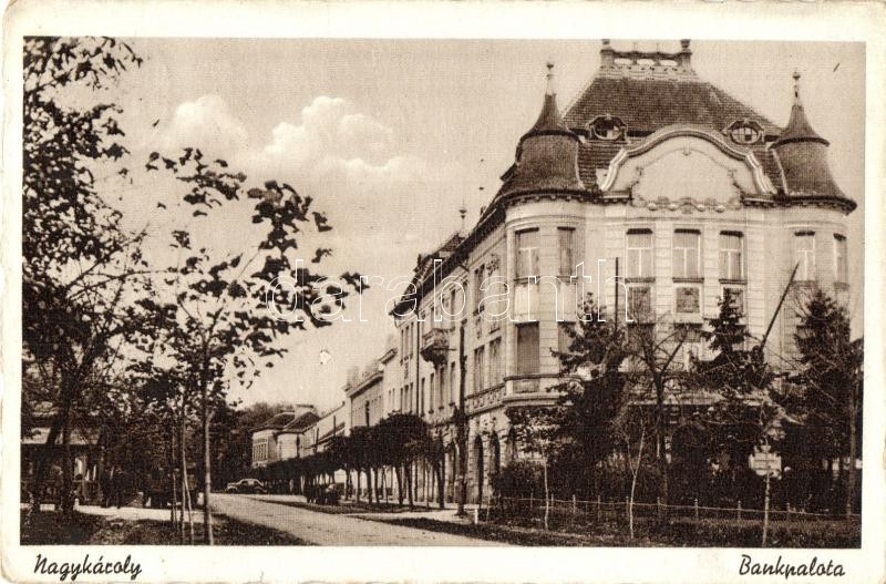 Nagykároly, Carei; Bankpalota / bank palace https://www.darabanth.com/hu/339-Gyorsarveres/339.0/Kepeslapok/Erdely~2000006/Nagykaroly-Carei-Bankpalota-bank-palace~II1873602