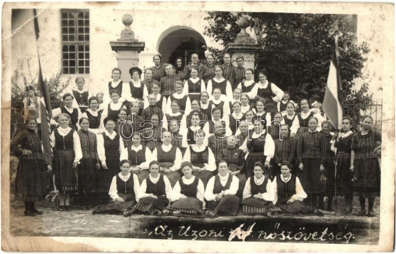 Leírás: Uzon, Usendorf, Ozun; az uzoni nőszövetség csoportképe, magyar zászló / Women's Association of Ozun, Hungarian flag. photo (szakadás / tear)
